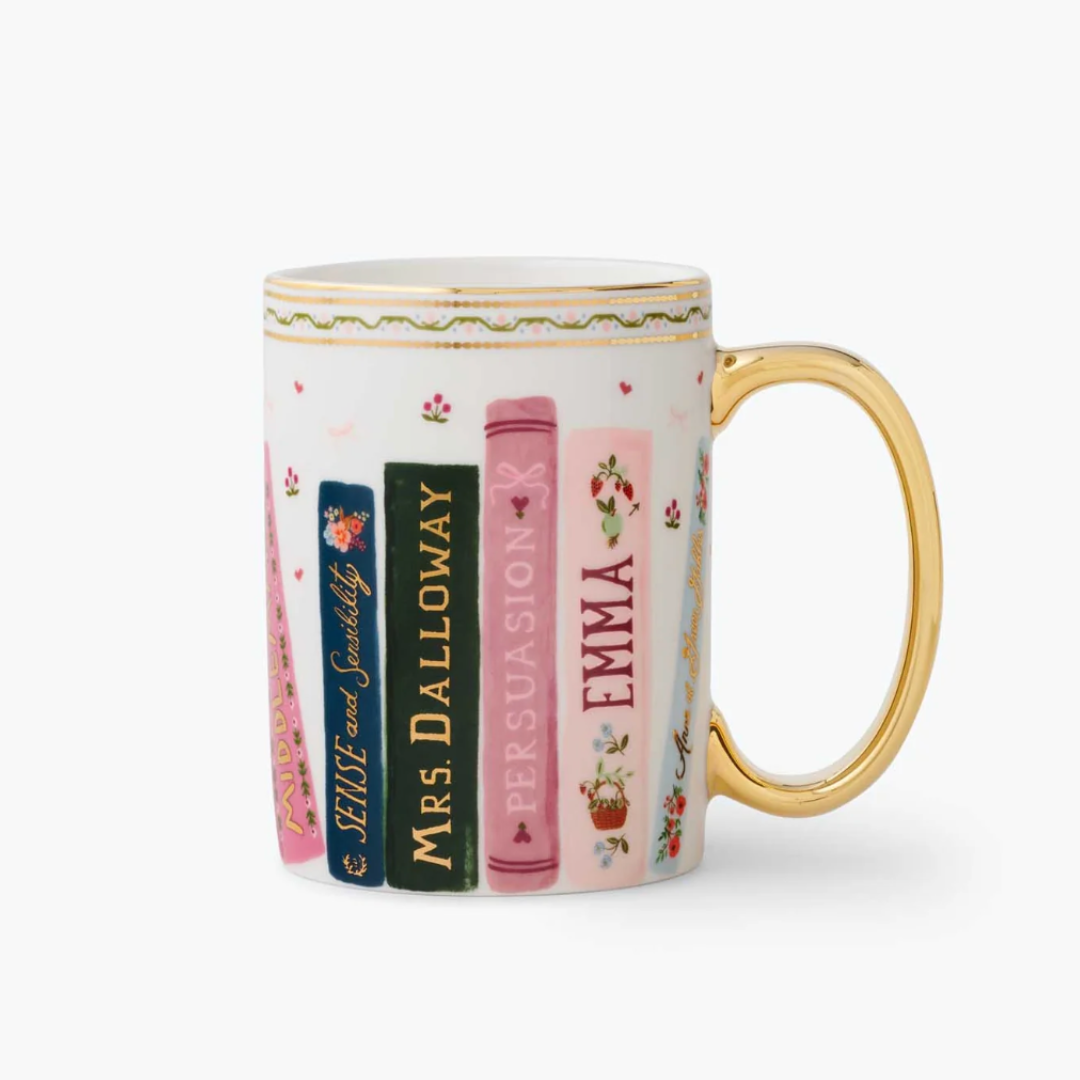 Our porcelain mugs feature illustrated designs with gold accents and a gilded rim and handle to add a festive touch to your favorite beverage.