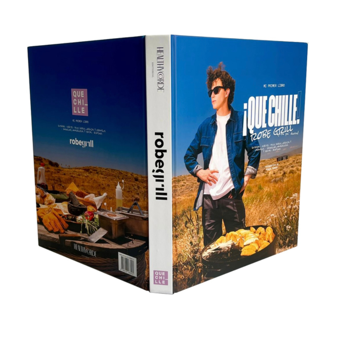 Libro de recetas del influencer ROBEGRILL, con 64 recetas de entradas, platos fuertes, tacos, hamburguesas sándwiches, desayunos.